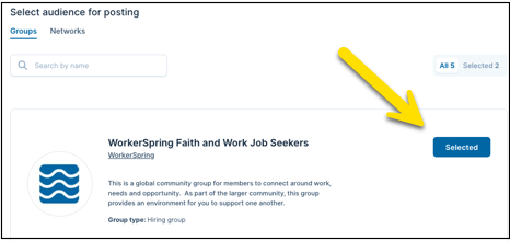 Click + Publish JobComplete job details,Select groups (only those matching the job type will appear)